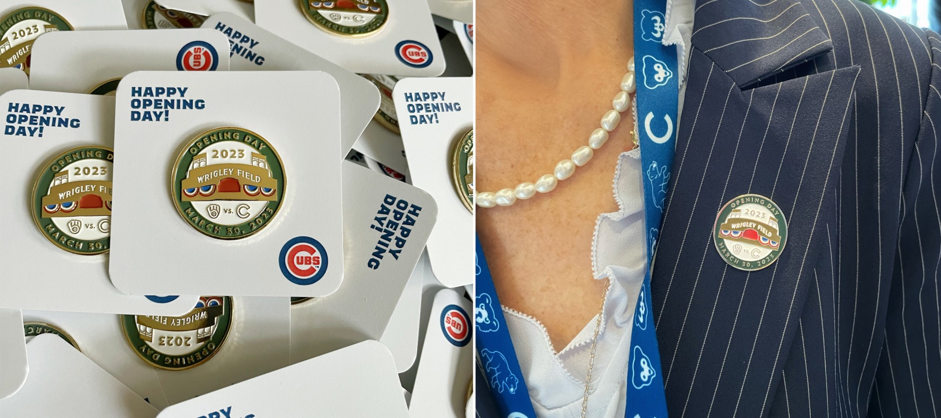 Check us out as we delivered 22 boxes of 11,000 pins to the stadium. It was quite a production! The first 10,000 fans to enter the park on Opening Day were lucky enough to score one of these limited edition pins. There was a lot of fanfare and excitement around the whole day, and the pins in particular. Fans, executives, staff, and even Hall of Famers like Ryne Sandberg (we met him!) proudly wore our pins at the game. The Cubs promoted the giveaway, as well, and there was a lot of social media buzz. Our instagram story received 40,000 views! And a couple new clients approached us for custom pins. All of that, plus a Cubs WIN!