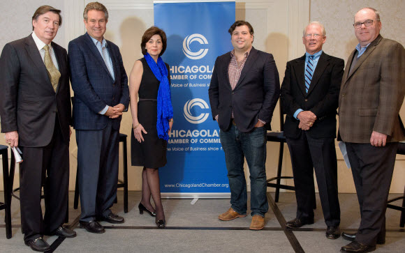 Serving on the keynote panel were Bob Jensen, Co-Founder and Owner of Argus Brewery; R.J. Melman, Managing Partner for several Lettuce Entertain You Enterprises (LEYE) restaurants; Marc Schulman, President of Eli's Cheesecake; and Alejandro Silva, CEO and Chairman of the Board of Evans Food Group Ltd. John Carpenter, Reporter for the Chicago Tribune’s Blue Sky Innovation, moderated the panel.