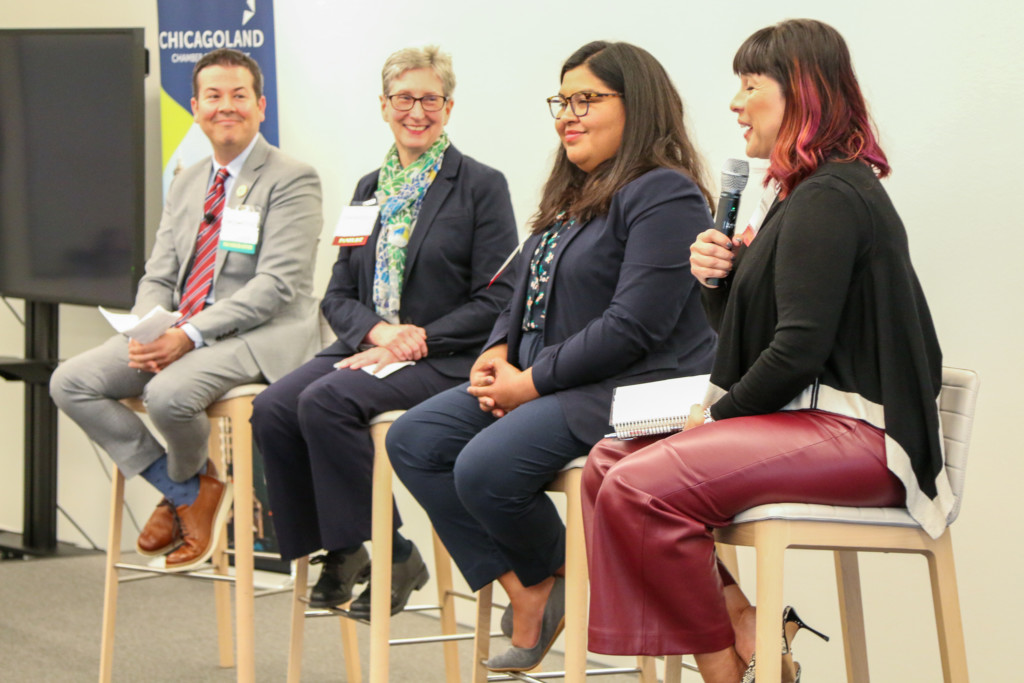 The second discussion, titled “Revitalizing the Windy City: Programs for Chicagoland’s Sustainable Future,” brought the issue closer to home. Led by moderator Jon Powell, the Global Head of the Sustainability Practice with Salesforce, the group included Illinois State Representative Eva-Dina Delgado, Cook County Sustainability Officer Deborah Stone, and Chicago Sustainability Officer Angela Tovar.