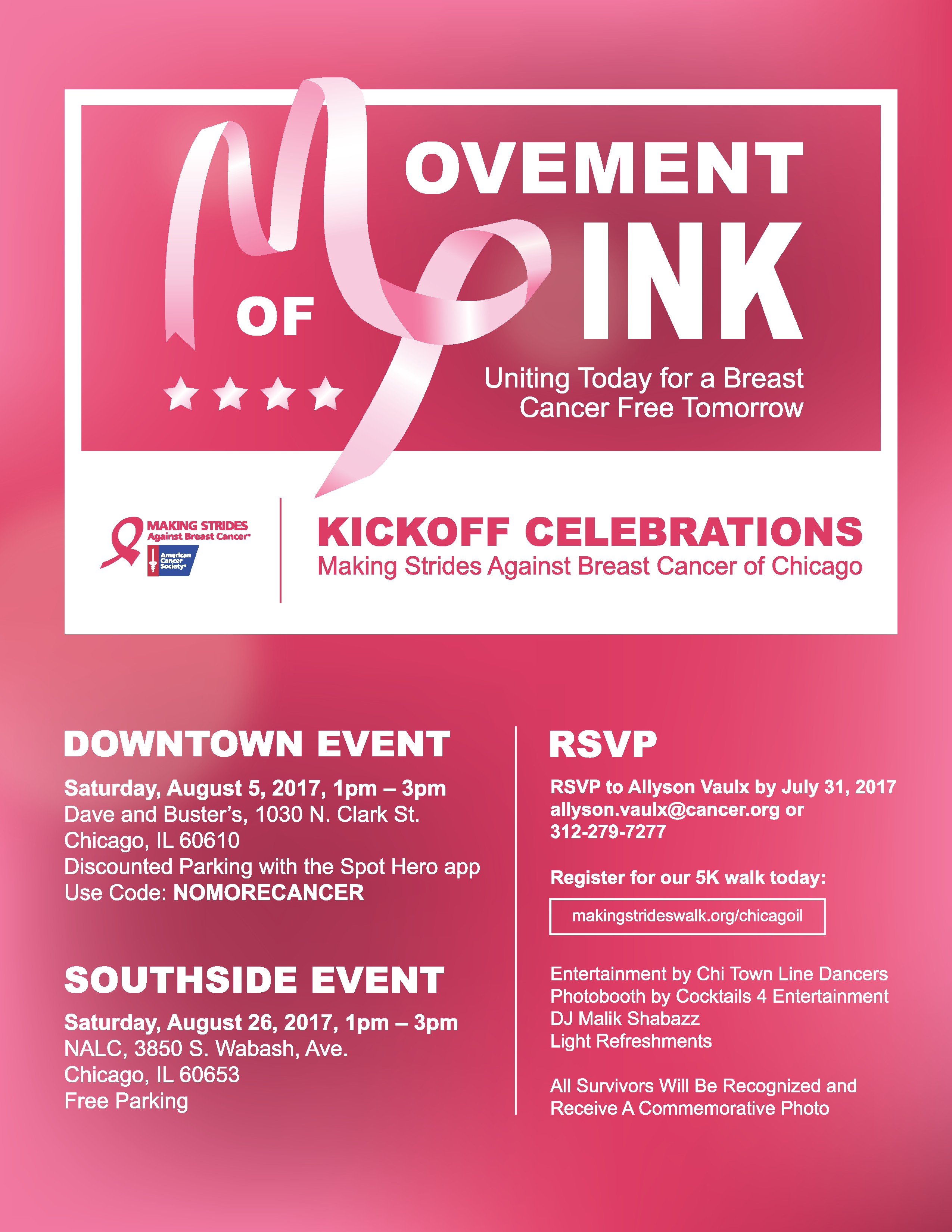 Chamber member American Cancer Society will be kicking off their Making Strides Against Breast Cancer program this August! This year’s theme is Movement of Pink. The goal of American Cancer Society's program is to create a fun, inspiring day to rally supporters and advocates to raise awareness and funds for this important cause.