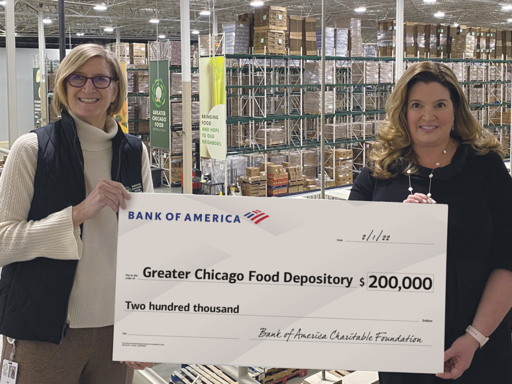 Bank of America is pleased to announce it has donated $400,000 to Chicago-area food banks – $200,000 to the Greater Chicago Food Depository and $200,000 to the Northern Illinois Food Bank – helping the organizations provide approximately 1.2 million meals for families experiencing hunger across Chicagoland.